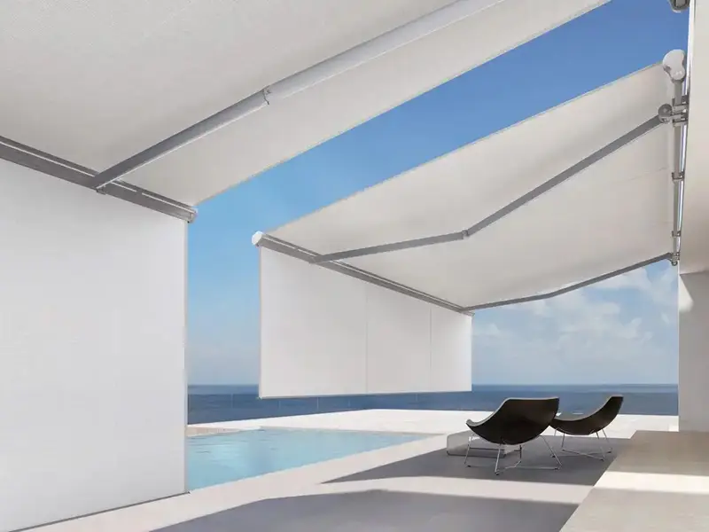 Modelul central al gamei, perfecționat continuu încă din 1993 — o copertină-casetă de referință, cu design aerodinamic inspirat din Formula 1. Se integrează ușor în orice stil de fațadă și acoperă suprafețe de până la 6 × 4 m cu doar 2 brațe.
