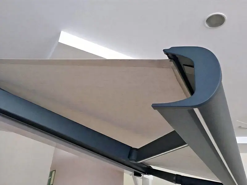 Forma aerodinamică a casetei îi permite să se potrivească natural într-o gamă largă de stiluri arhitecturale, de la fațade contemporane la clădiri cu expresie mai clasică. Poate fi echipat opțional cu profil de acoperiș, care maschează complet spațiul dintre casetă și perete pentru un finisaj curat și integrat. Capacele laterale din aluminiu solid, vopsite electrostatic, completează aspectul premium și adaugă un plus de rezistență în timp.