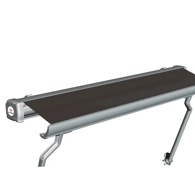 Structura suport este turnată din aluminiu, tubul de rulare din oțel, ghidajele laterale din poliamidă injectată. Opțional: Texpro — semicasetă de protecție a materialului textil, disponibilă ca accesoriu separat pentru cei care doresc protecție suplimentară fără prețul unui sistem cu casetă integrată. Rezistență la vânt certificată până la 38 km/h (Clasa C.2, norma UNE-EN 13561:2015). Acționare manuală, motorizată sau automatizată.